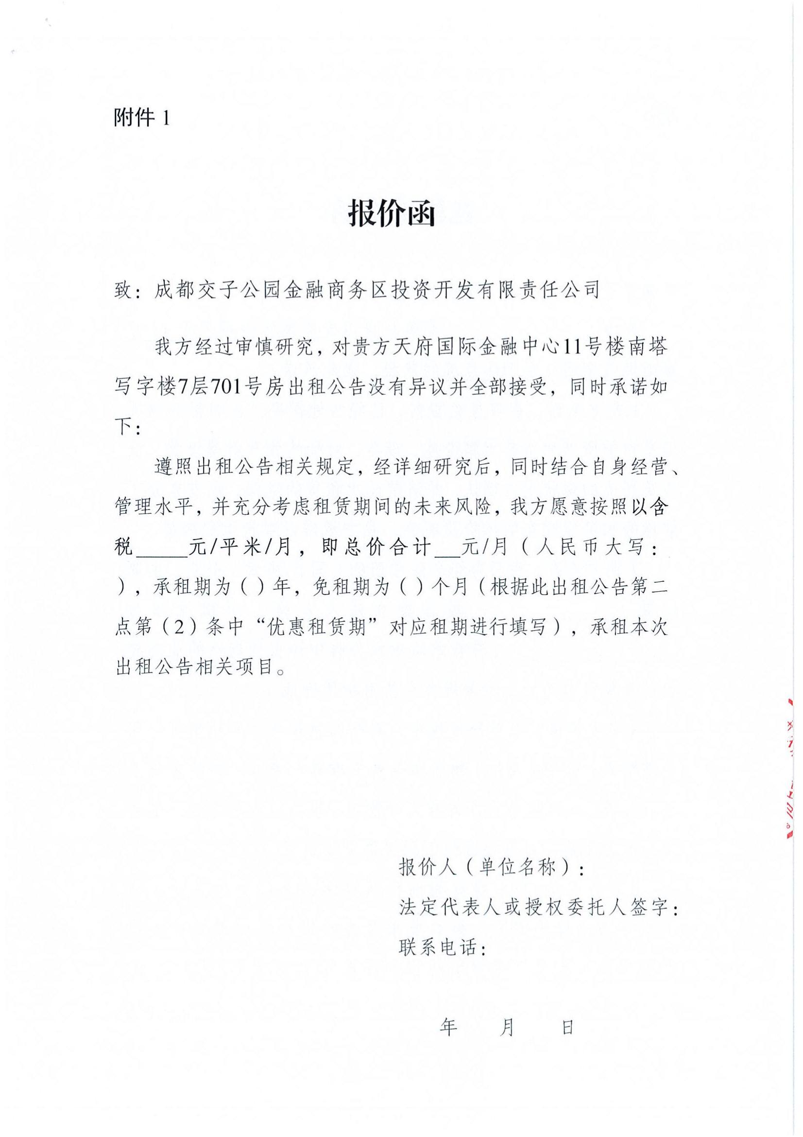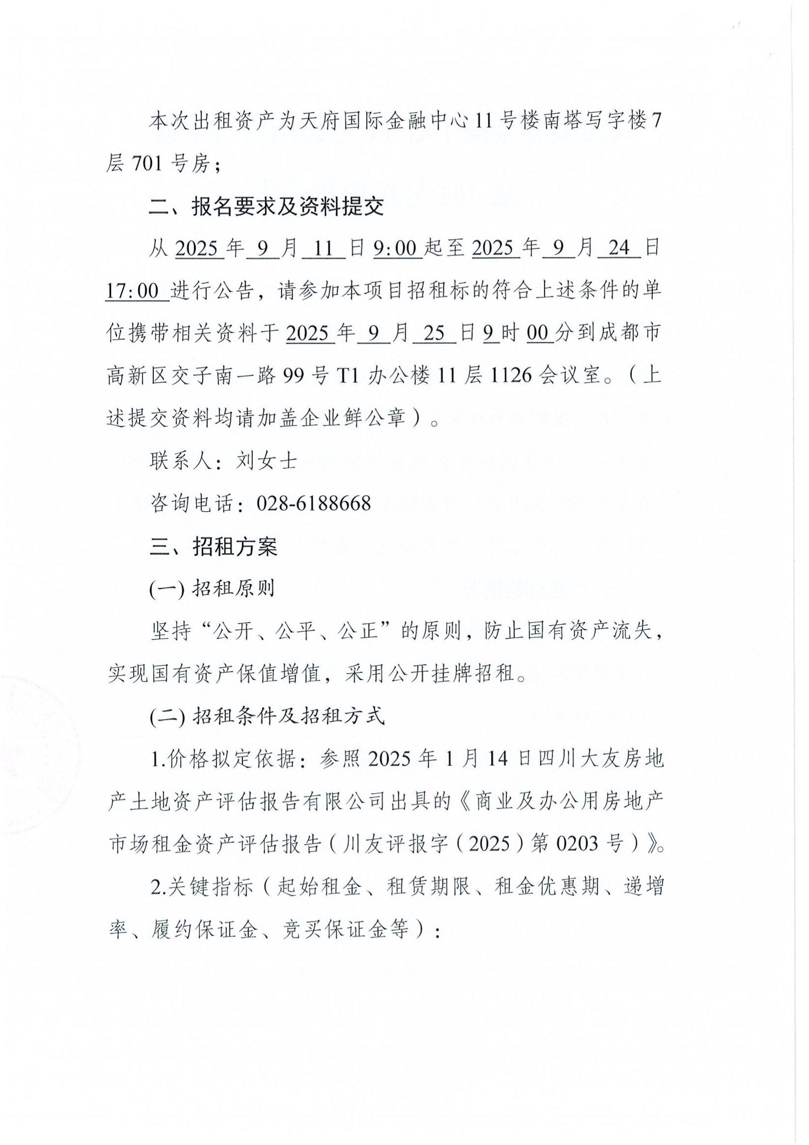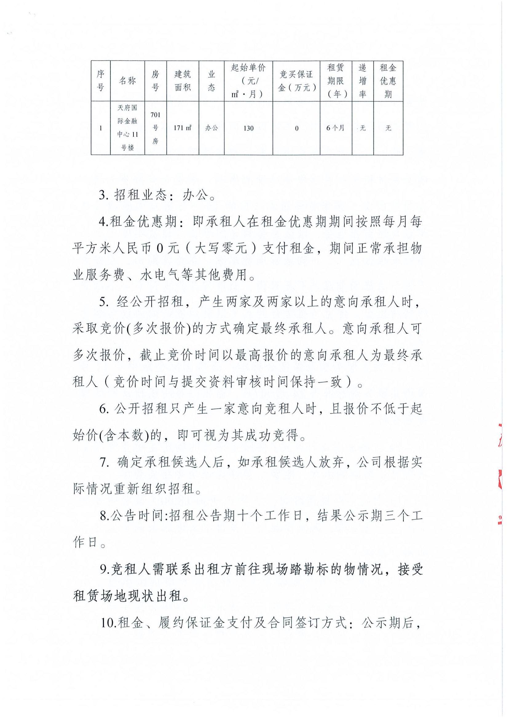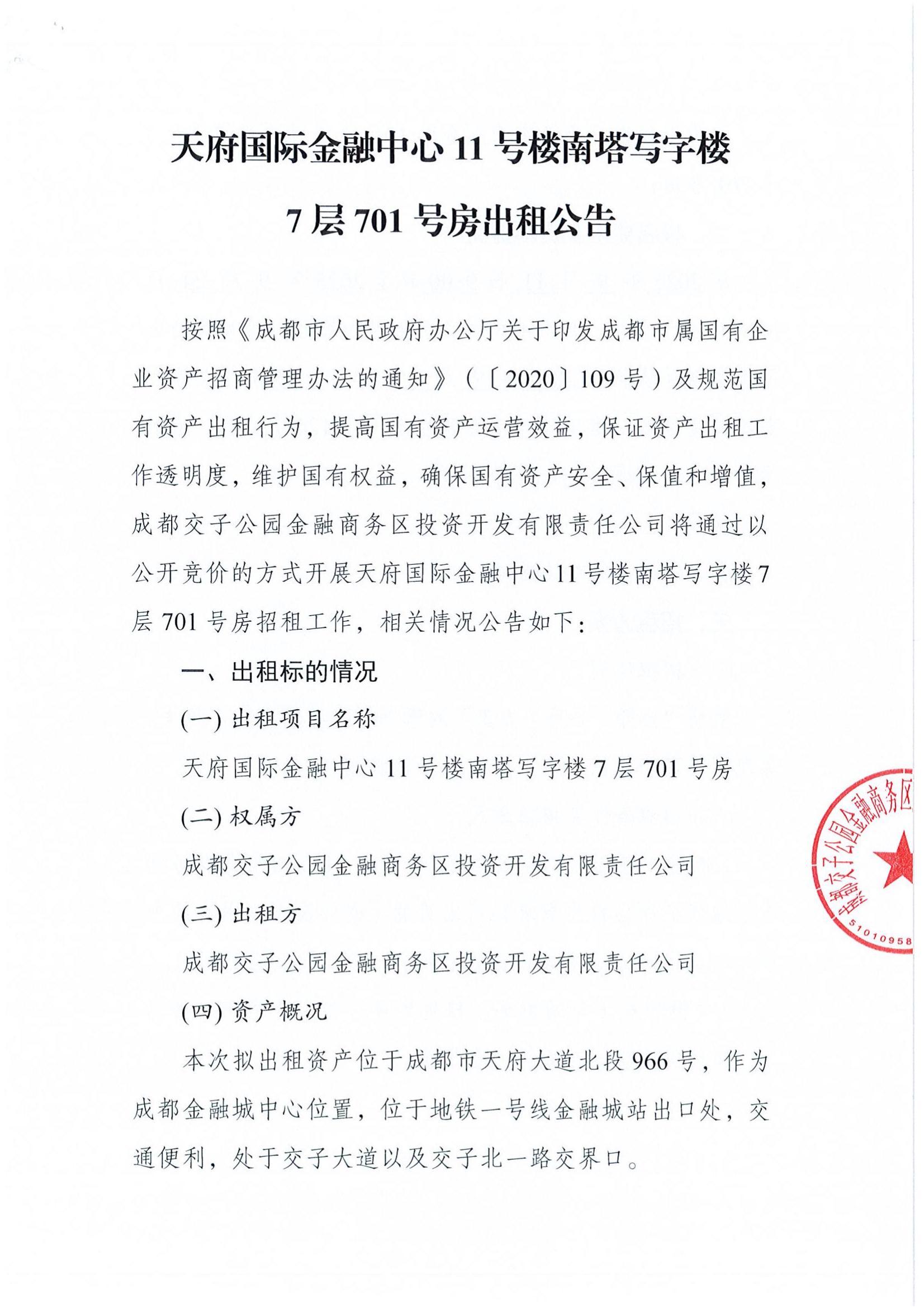 天府國(guó)際金融中心11號(hào)樓南塔寫(xiě)字樓7層701號(hào)房出租公告